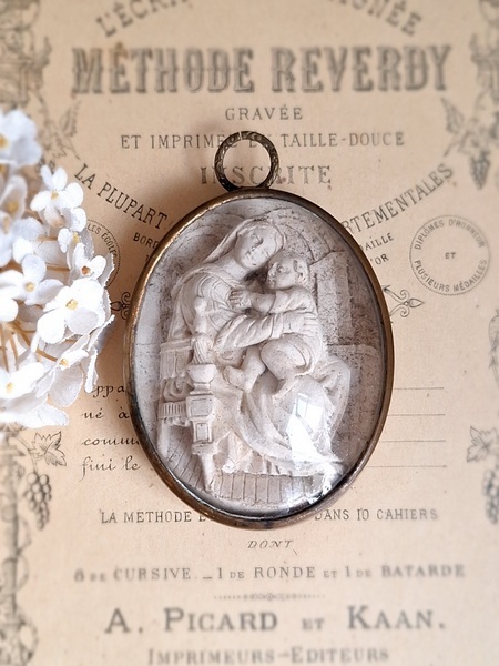 アンティーク聖母子小さなメダイヨン