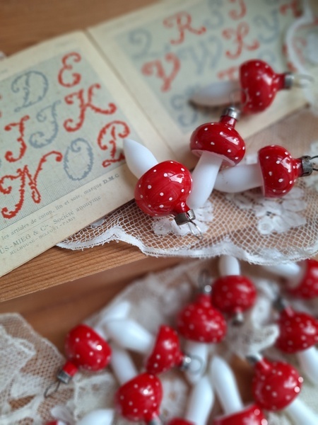 チェコの吹きガラスきのこクリスマスオーナメント 各3,000円/高さ4.5〜6/2.5cm