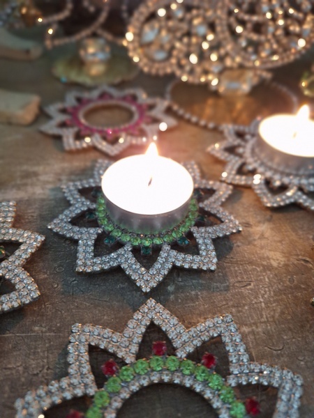 チェコガラスティーキャンドル置き 2点の場合は5,000円/0.6/9.3/9.3cm、中央の直径3センチくらい