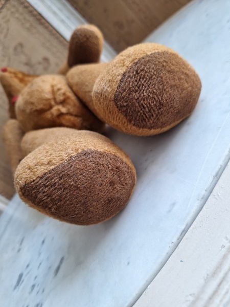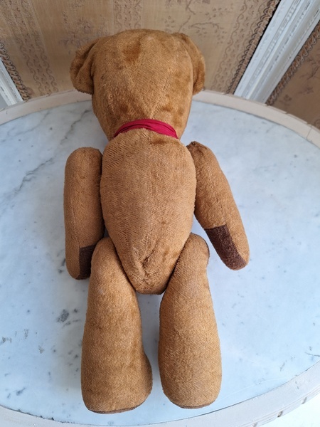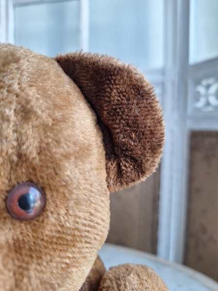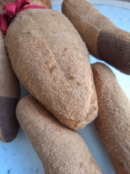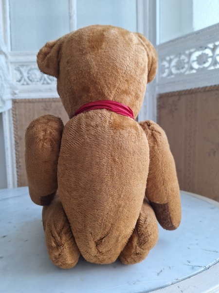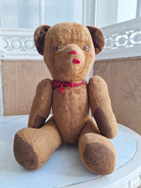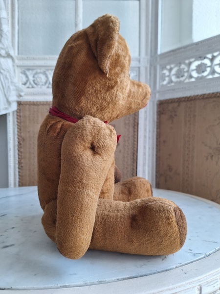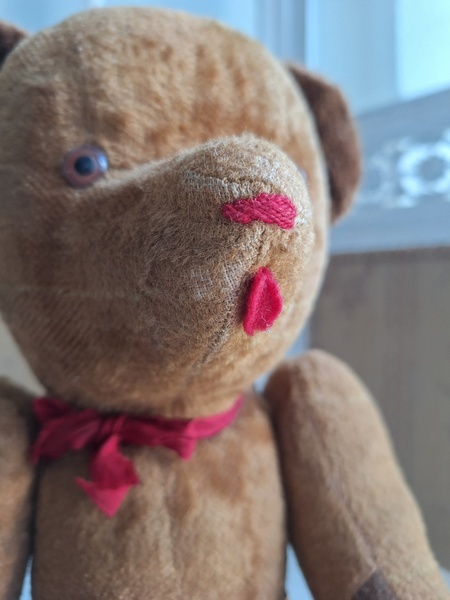フレンチテディベアです。舌を出したお茶目さんです。藁がしっかり入っていて品質の良いベアです。目はガラス製、手脚、首はジョイントで動きます。とても良い状態です。フランス製/1950年代ごろ