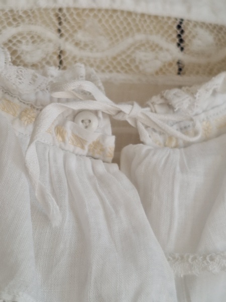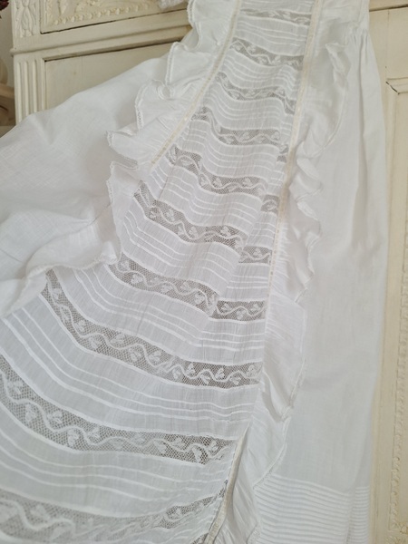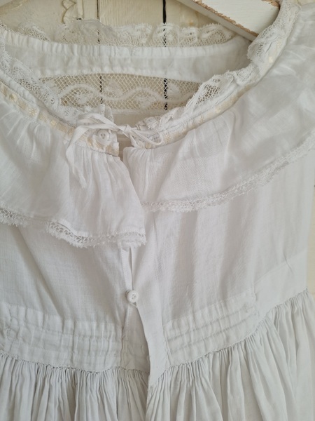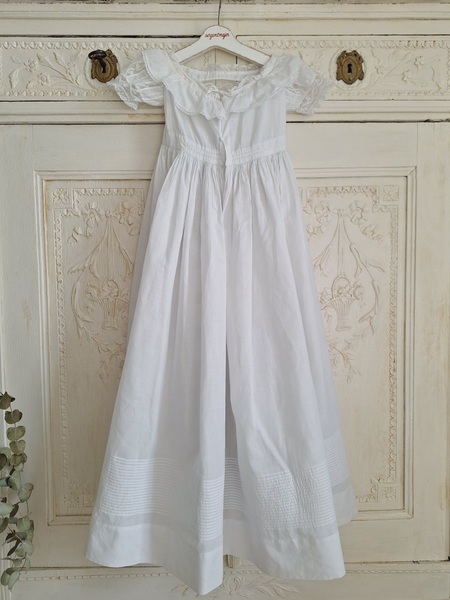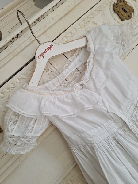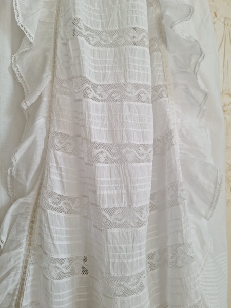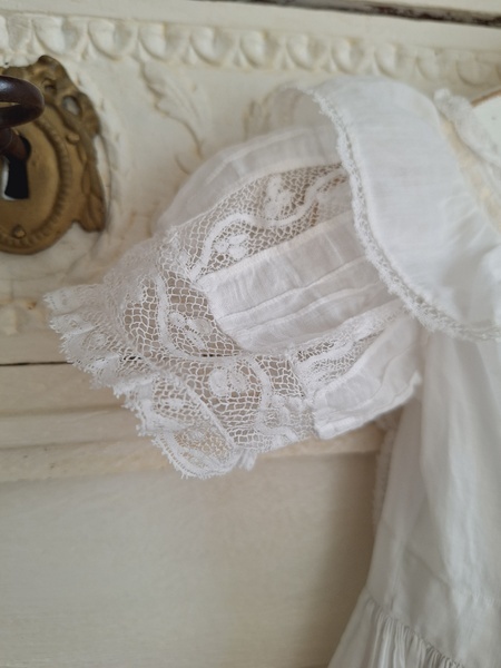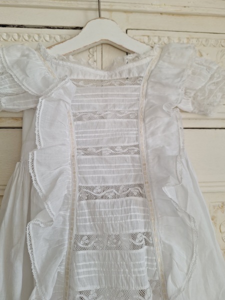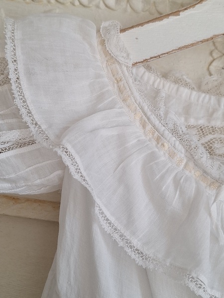 アンティークレース洗礼式用ベビードレスです。全面のレースとふわふわのフリル使いが愛らしい洗礼式用のドレスです。最後のような小さな痛み、小さな汚れ、ホールがありますが他、良い状態です。痛み、汚れは拡大画像なので実際はとても小さいので気になる感じはありません。フランス/1900年初頭
