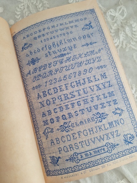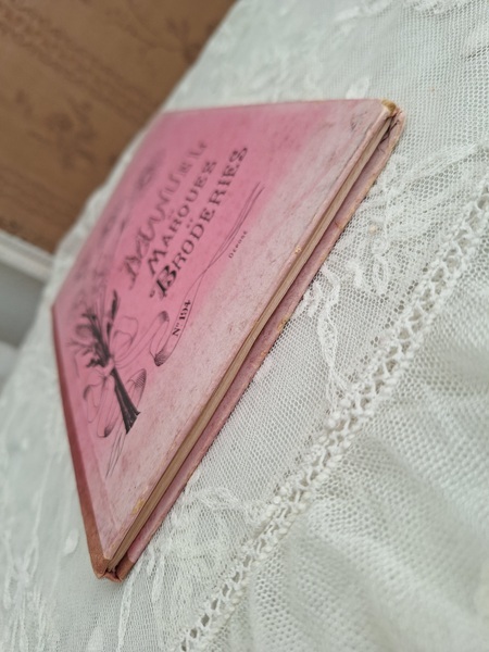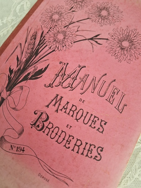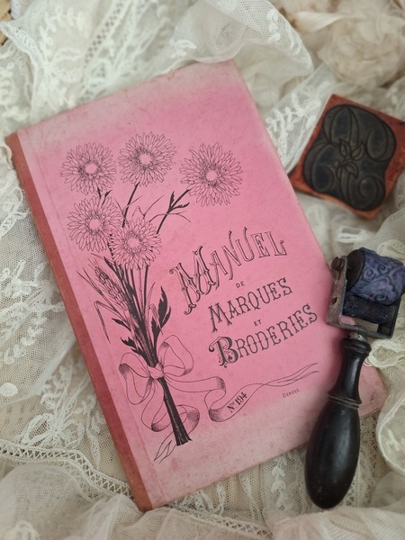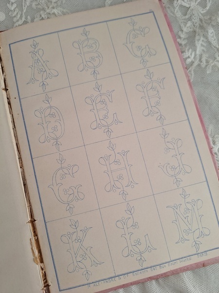 MANUEL DE MARQUES ET BRODERIES/モノグラム図案本です。鮮やかなピンクの表紙に花柄が可愛い本です。31ページあります。ページの痛み、表紙から少し剥がれた箇所があります。このまま手芸雑貨と飾っても素敵な本です。図案も色々とあり、参考になりますよ。フランス製/1910年代