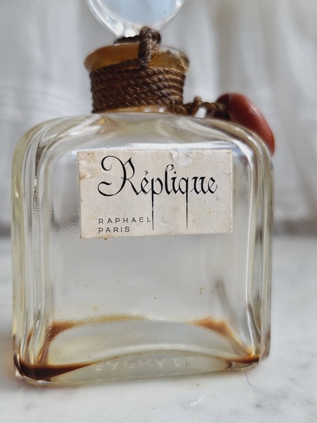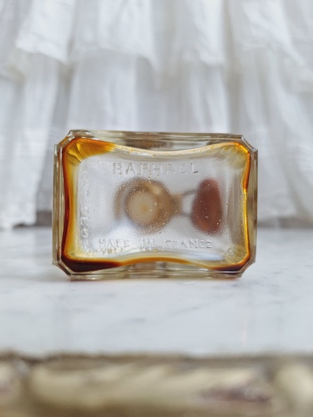 Replique Raphaelパフュームボトルです。ラファエル・パリが1944年に発売した女性向けの人気香水です。ベルガモットよりレモンの香りが強いフローラルの香水が入っいました。おしゃれなボトルで飾っていただいても素敵です。特に痛みはありません。良い状態です。フランス製/ヴィンテージ