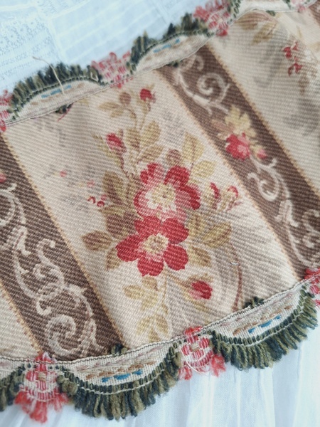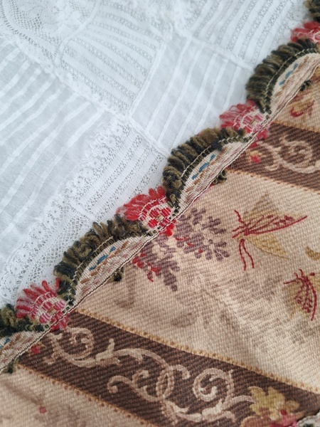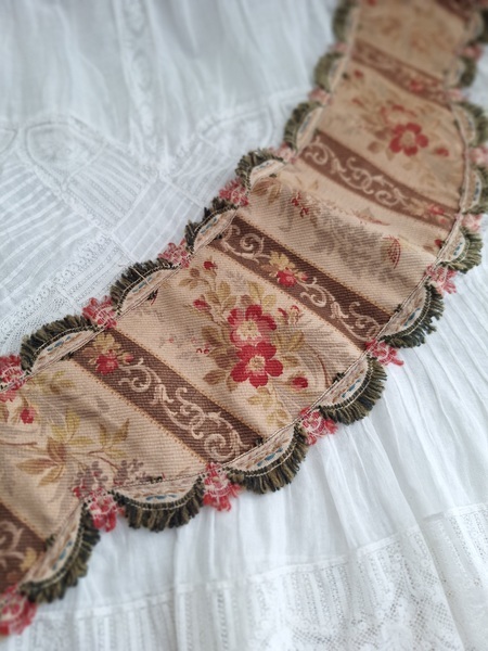 フレンチファブリックカーテンタッセルです。カーテンを留める物です。一点しかありませんがレースのカーテンなどと一緒に使っていただいたらと思います。フランス/1900年初頭