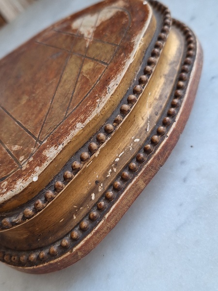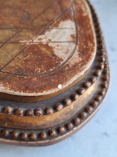 アンティーク台座です。小さめの台座です。フットの後ろ側のパーツが欠損している箇所が2つありますがご覧のように正面のパーツはついているので特に使用時に気になる感じはありません。長年使われて来た雰囲気のあるお品です。今年に入ってから見かける機会がぐっと減ってしまいました。