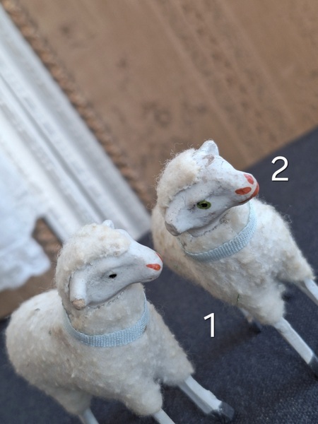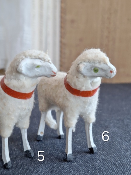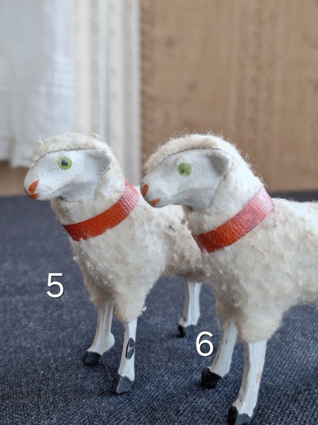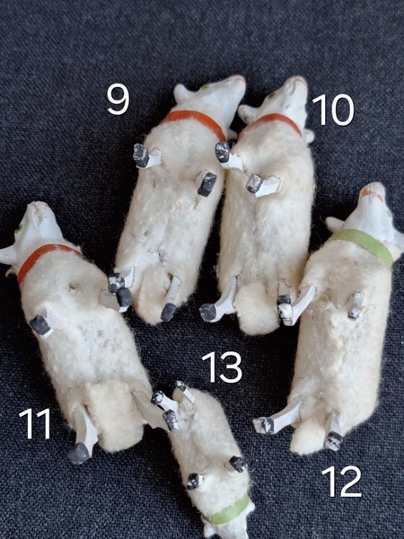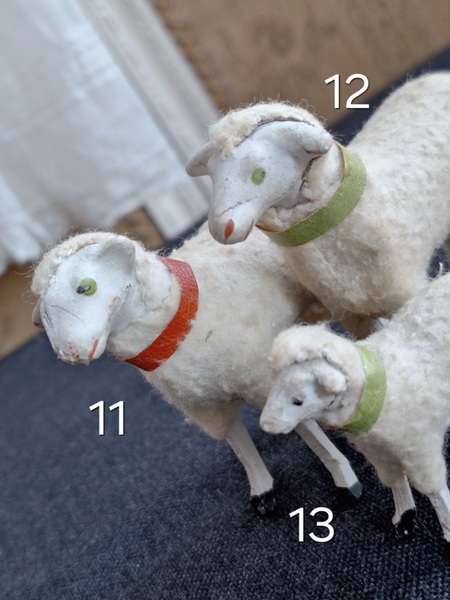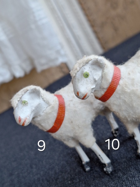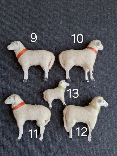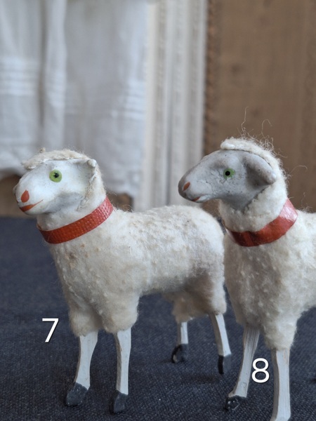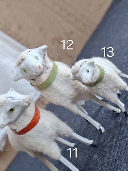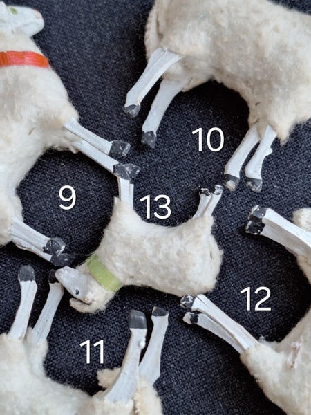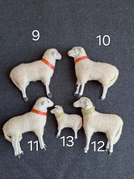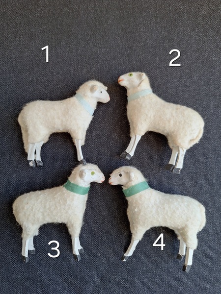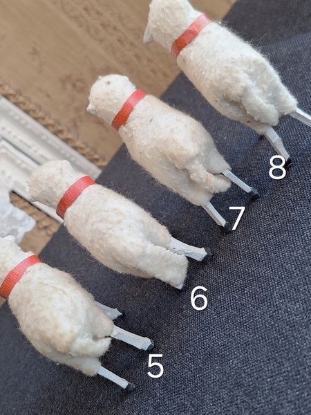 アンティーク羊オーナメント/フィギュアーです。クリスマスツリーの下などに飾られていたプレゼピオの一部のオーナメントです。ヨーロッパではとてもとても人気で高値でやり取りされています。アンティークフェアでは見かけますがブロカントで見つける事はもう難しくなりました。少しペイントが剥がれていたり、ヒビのある在庫もあります。一部目の黒いペイントが元々ついていない在庫があります。ご自身でもペイント出来るので良品扱いにしています。フェアなどで買付すると最低でも1体7,000-8,000円くらいになりますが今回は少しお安く入りましたのでお安くしています。価格はコンディションよって設定しています。コンディションは画像で確認出来るようにしていますが分かりづらい方は下の詳細からご確認ください。カートで希望の在庫を選んでいただいたら価格が表示されます。ドイツ/1900-20年ごろ