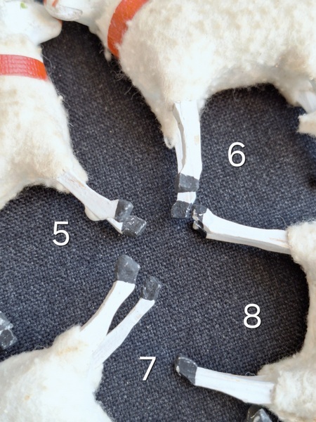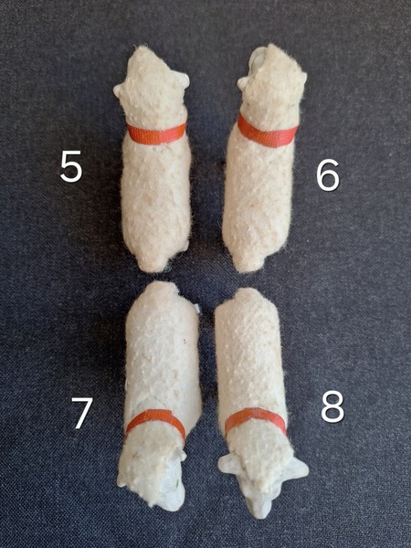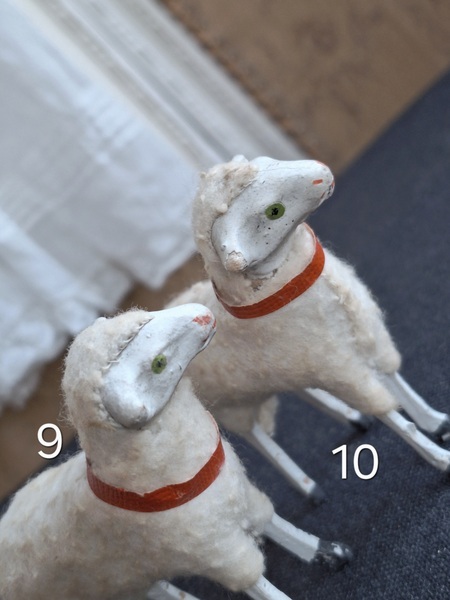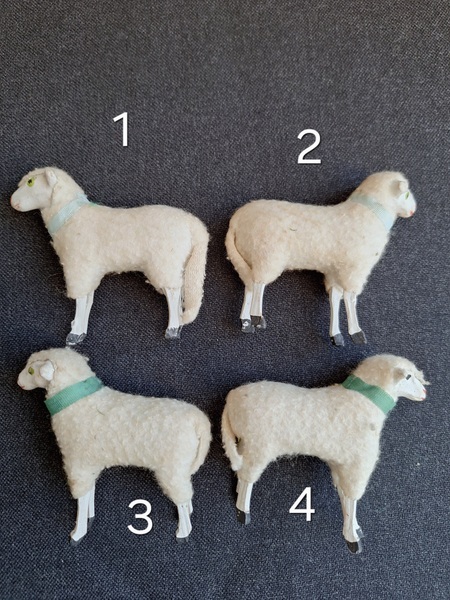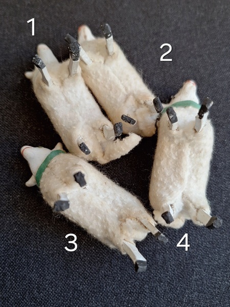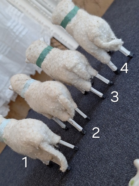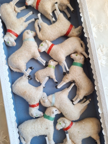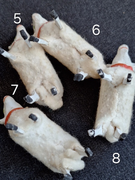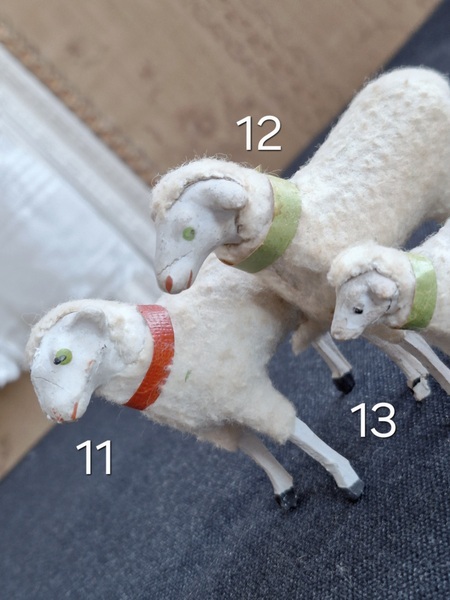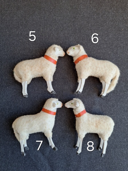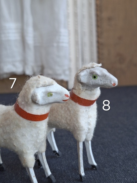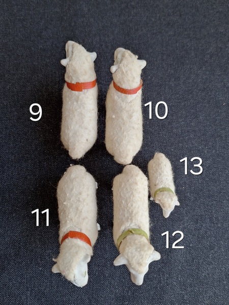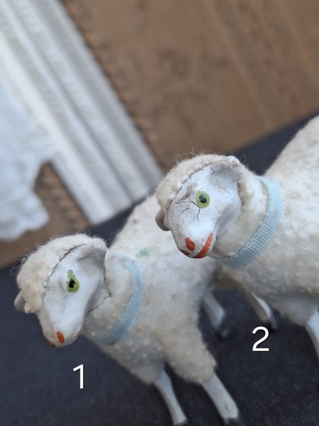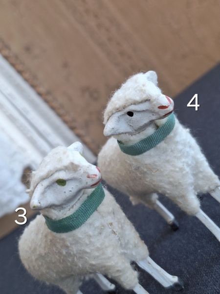 アンティーク羊オーナメント/フィギュアーです。クリスマスツリーの下などに飾られていたプレゼピオの一部のオーナメントです。ヨーロッパではとてもとても人気で高値でやり取りされています。アンティークフェアでは見かけますがブロカントで見つける事はもう難しくなりました。少しペイントが剥がれていたり、ヒビのある在庫もあります。一部目の黒いペイントが元々ついていない在庫があります。ご自身でもペイント出来るので良品扱いにしています。フェアなどで買付すると最低でも1体7,000-8,000円くらいになりますが今回は少しお安く入りましたのでお安くしています。価格はコンディションよって設定しています。コンディションは画像で確認出来るようにしていますが分かりづらい方は下の詳細からご確認ください。カートで希望の在庫を選んでいただいたら価格が表示されます。ドイツ/1900-20年ごろ