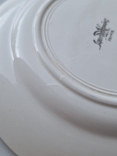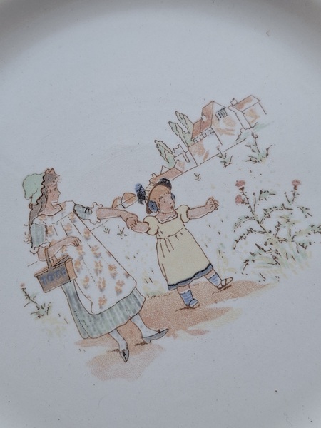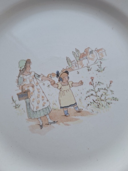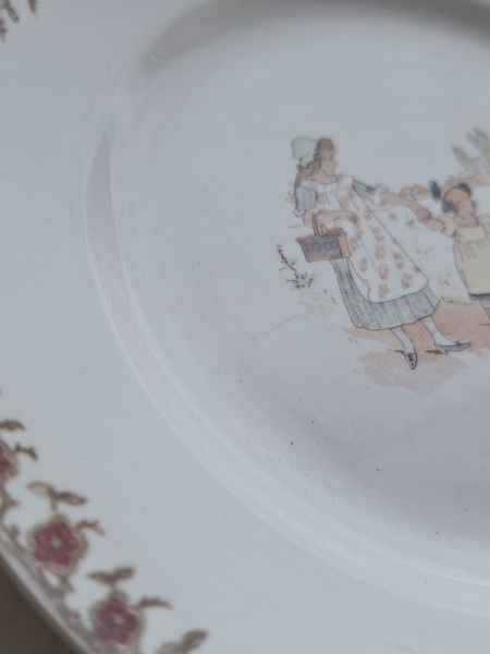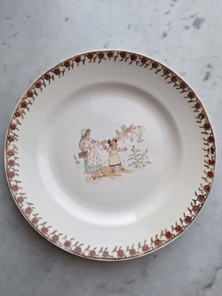 サルグミンヌEnfant Richardプレートです。フランスのイラストレーター、Enfant Richard(アンファン リシャール)が手掛けたシリーズでフランスをはじめヨーロッパではコレクターが多いアイテムです。どの柄も微笑ましくて見つけると買い付けしてしまいます。ヒビ、欠け、目立った貫入などありません。良い状態です。フランス製/1900年初頭