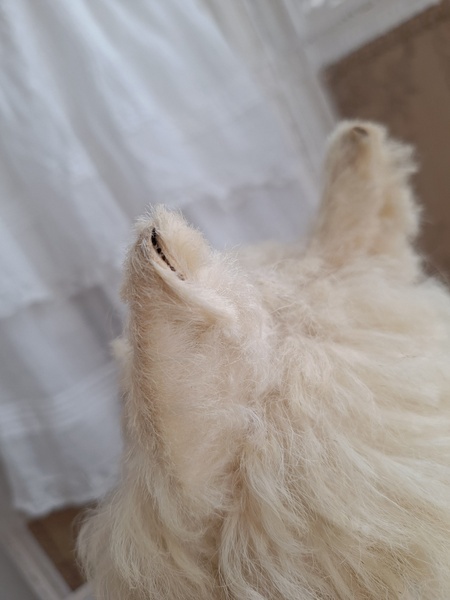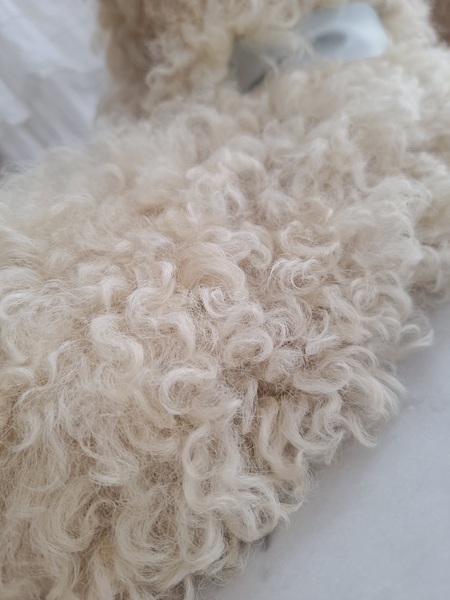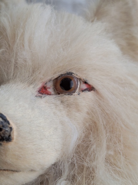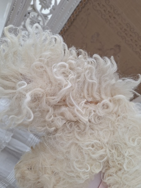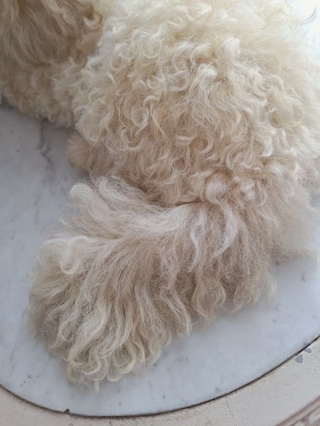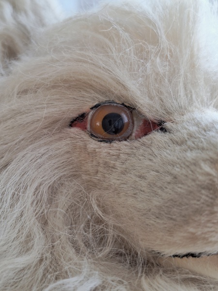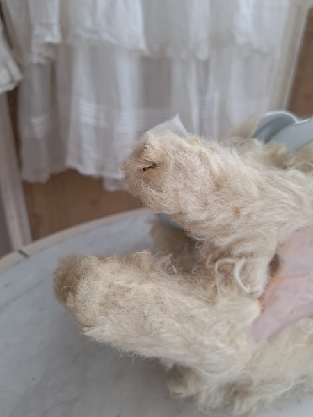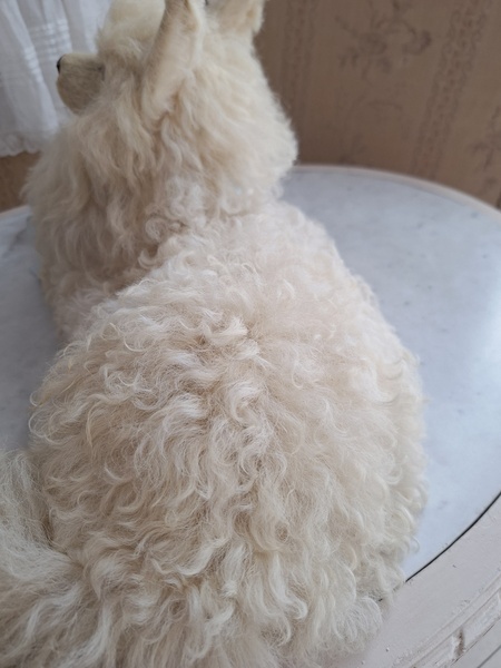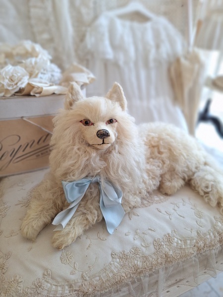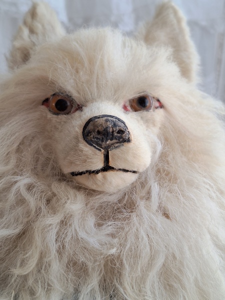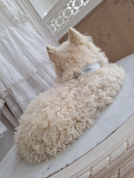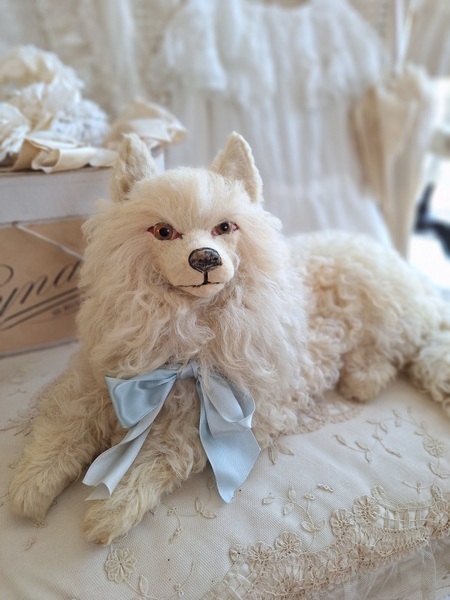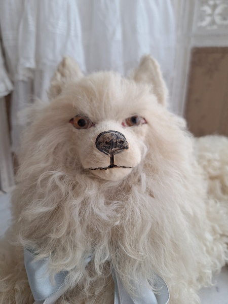 Lou Louパジャマドッグです。こちらは見た時に今まで扱った中では小ぶりな印象でした。小さめで可愛いです。ガラスアイです。表情が豊かで本当に存在感があります。耳の毛が少し薄くなっている箇所があります。お顔や毛並みが綺麗で良い状態と思います。フランス製/1900年初頭ごろ