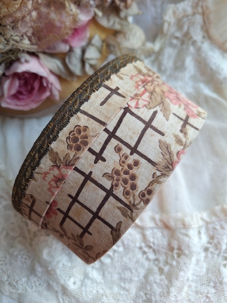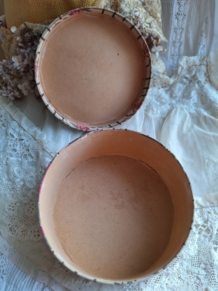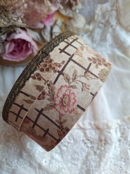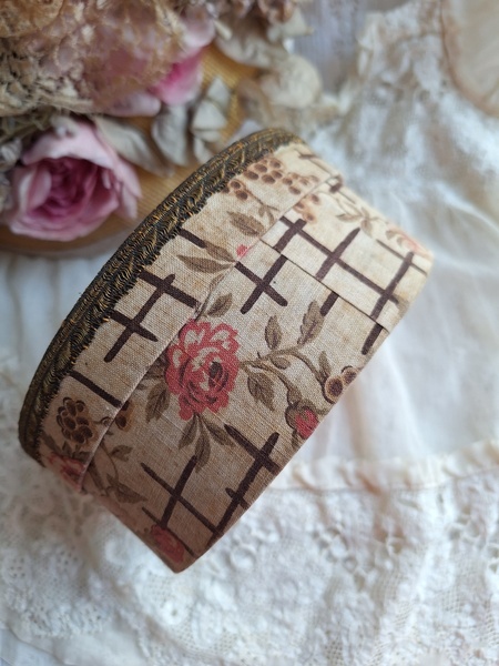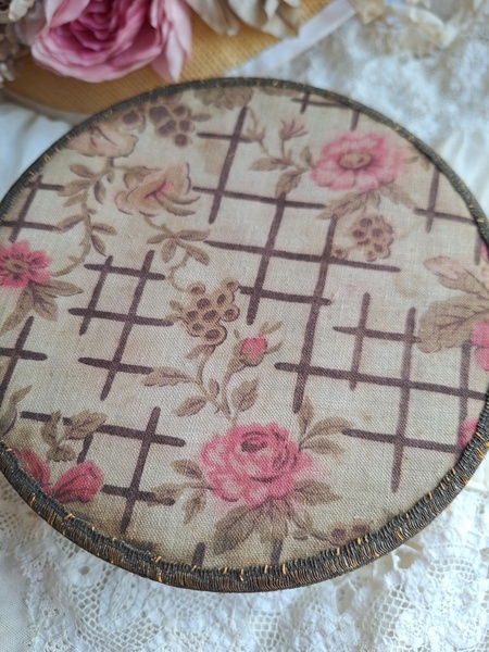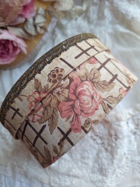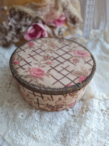 花柄カルトナージュボックスです。可愛い柄の生地が使われたカルトナージュボックスです。付け襟入れです。薄い色褪せはありますがもともとがベージュ系なので気になる感じは無いと思います。痛みは無く良い状態と思います。いつもお世話になっているパリのディーラー様から入荷しました。フランス製