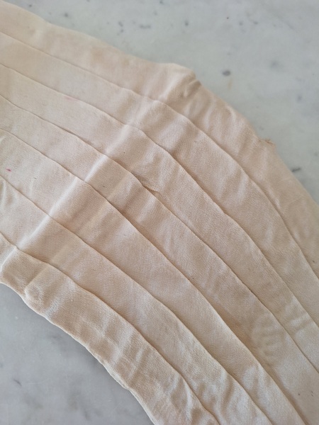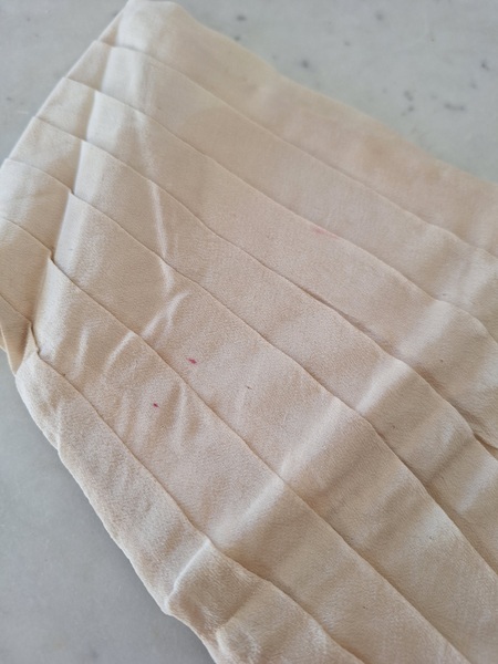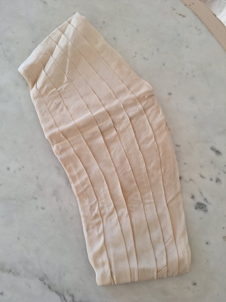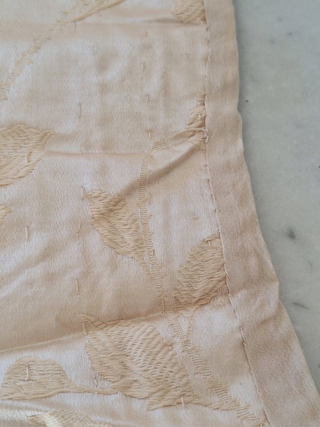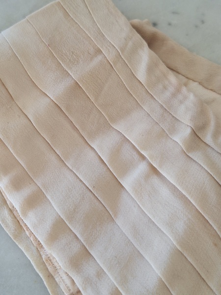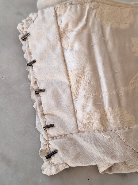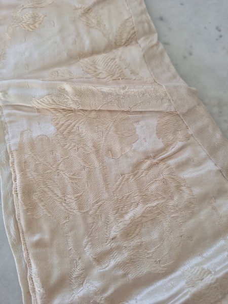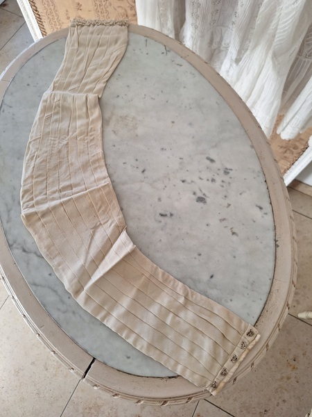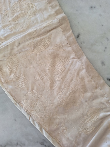 ヴィクトリアンサッシュベルトです。バックルなどがない幅広の布や革などで作られた飾り帯です。ウエストに巻いて使うアイテムです。裏地はヴィクトリアン期のウエディングドレスなどによく使用されている生地が使われています。一か所汚れがありますが年代を考えるととても良い状態です。フランス