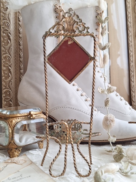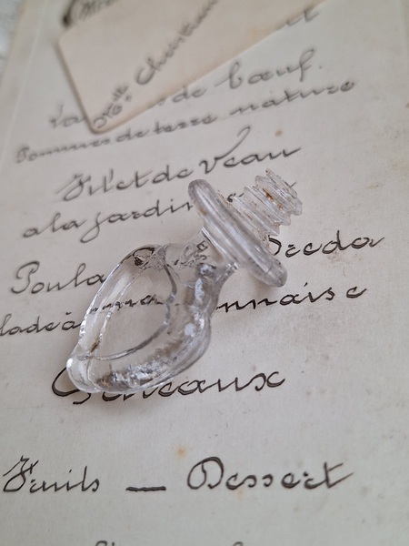 Féret Parfumeurスタンド付香水瓶です。大変珍しいスタンド付の香水瓶です。ミラー付きのスタンドが香水瓶をより演出してくれますね。1878年にパリでフェレ兄弟によって設立された、歴史あるフランスの家族経営の化粧品ブランドです。1865年に創業した父親の伝統を受け継ぎ、フランス製の正真正銘の製品にこだわり、伝統的な製法を今も守り続けているメーカーです。ラベルにスタンドに入ってた際に出来たと思われる痛みが見られます。飾っていただく際、スタンドに隠れますので気になる感じはないと思います。他良い状態です。中はコルクがまだ付いたままですので蓋をされたい場合は外していただいたらと思います。買い付けした状態でお届させていただきます。一緒に入荷した淡いレッドの在庫はこのページの下の方の関連商品からご確認ください。円安が進んで買い付け額が高い商品は日本円にするととても高くなりますが大変珍しいお品ですフランス製