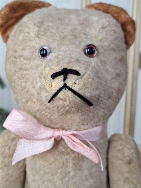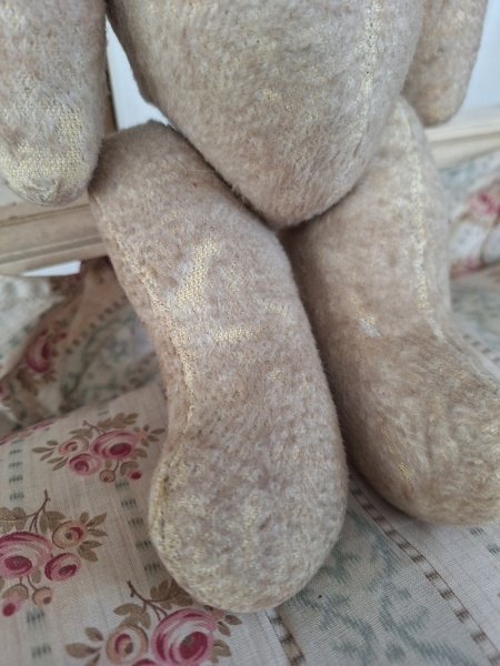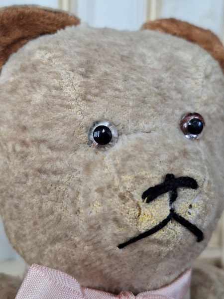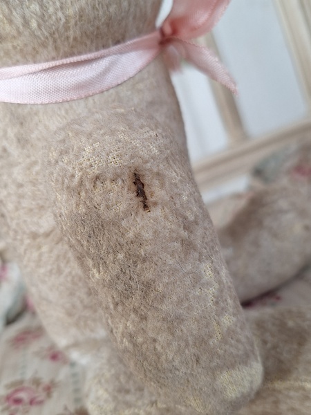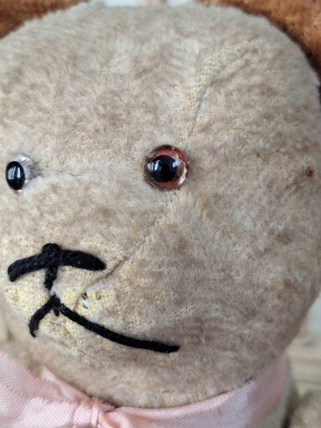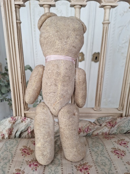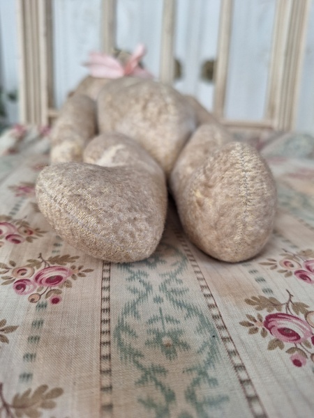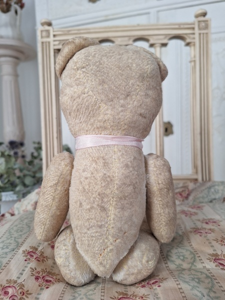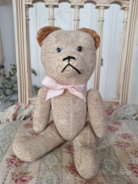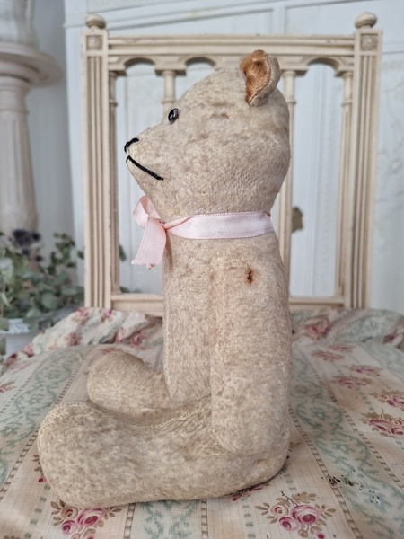 JPMフレンチテディベアです。中は藁、目はガラス製、手脚はジョイントで動きます。口と鼻の刺繍は後年、刺し直されています。大きな子は時々お世話になっているディーラーさんから入手出来るのですが小さめの子は本当に見つけるのが難しくなっています。お探しの方はどうぞ。フランス製