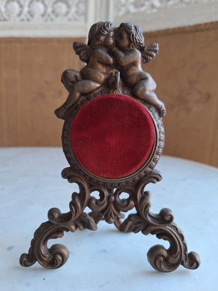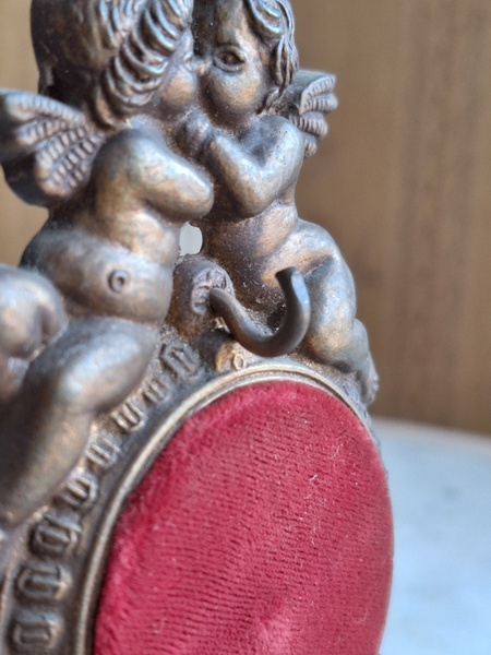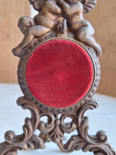 天使の懐中時計スタンドです。画像はメダイヨンですがペンダントなども掛けていただけると思います。ずっしり重みがあります。ベルギー/ヴィンテージ
