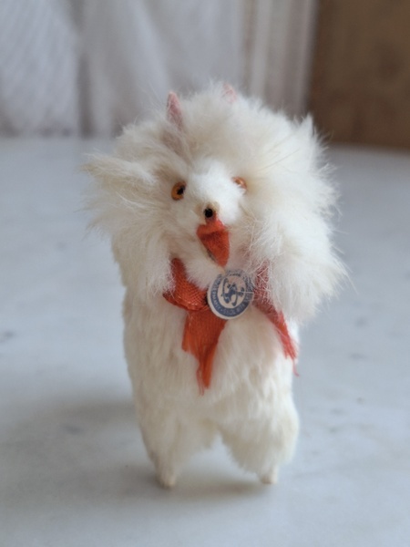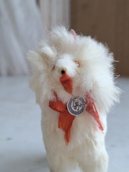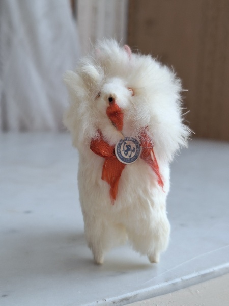 LouLouドッグ/ジュモードッグです。ジュモーなどのアンティークドールのコンパニオンドッグとしてドール図鑑などでも見かける子ですね。脚は木製です。こちらではとても高値でやり取りされています。今回はフランスで見つけました。タグも付いたままで良い状態です。今まで大き目の子が多かったのですが今回はアンティークの羊さんくらいの可愛いサイズですよ。ドイツ/1940年ごろ