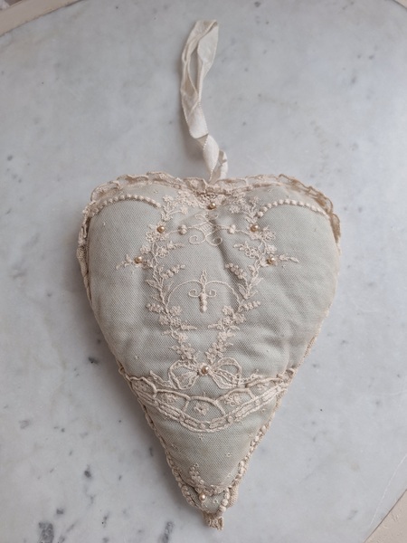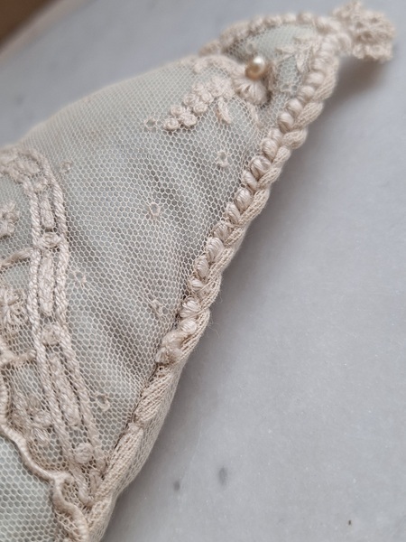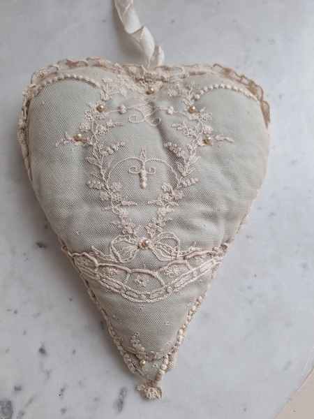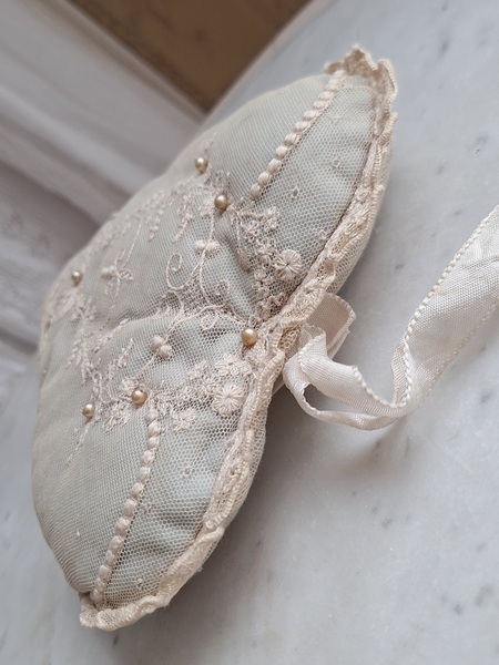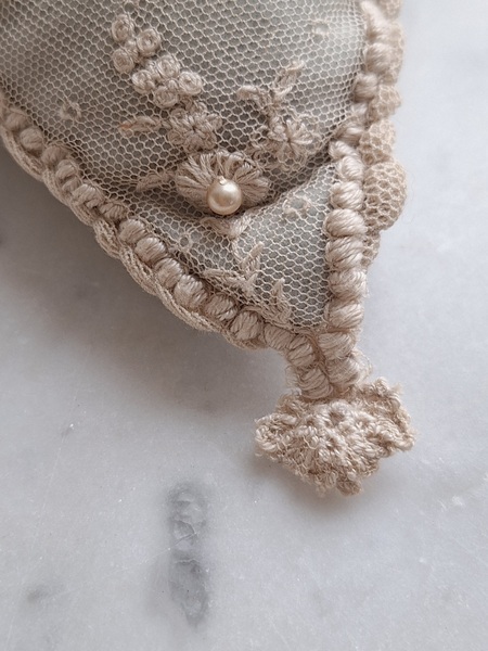 アンティークレースクッションです。ヨーロッパで人気のアンティークディーラーさまがアンティークレースをたっぷり使って作られたレースクッションです。フランスの夏の買い付けでも時々お会いします。レースをコツコツ集めてバケーションハウスでクッションやバスケットを作られているそうです♪最近はレースのお値段が高くなって、なかなか見つからないとおっしゃっていました。素材はフランスアンティーク