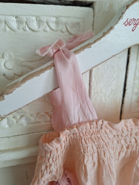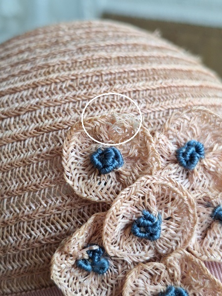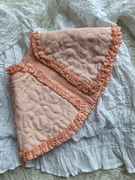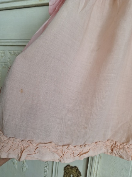丸印のようなほつれがあります。ノースリーなので大き目のベアに着せてウエストにリボンなど付けてもらったら可愛いかなと思って買い付けしました。