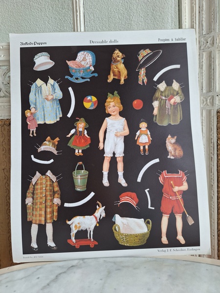 JF Schreiberのペーパードールシートです。ドイツの高品質の児童書や絵本、段ボール紙などを扱う会社として知られていました。ドイツ製