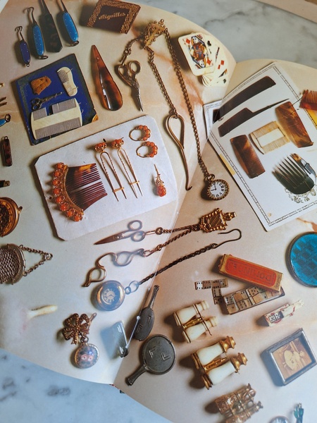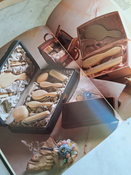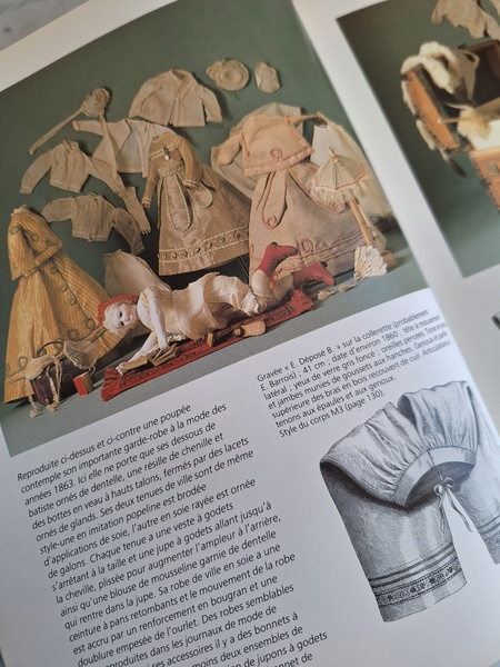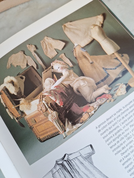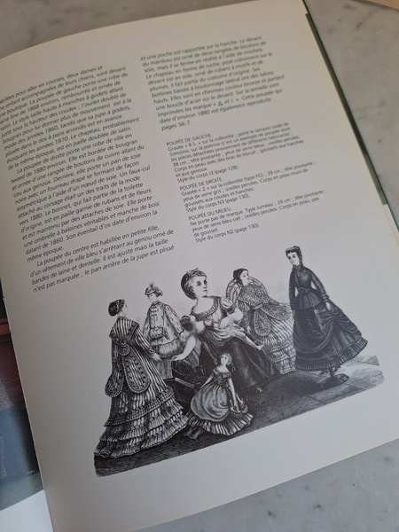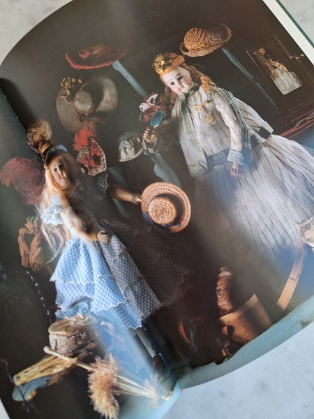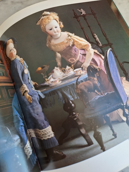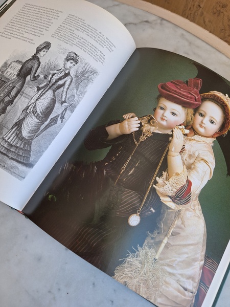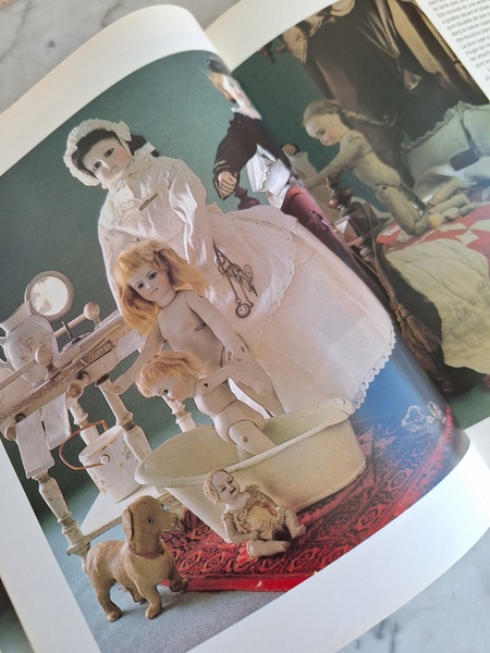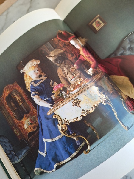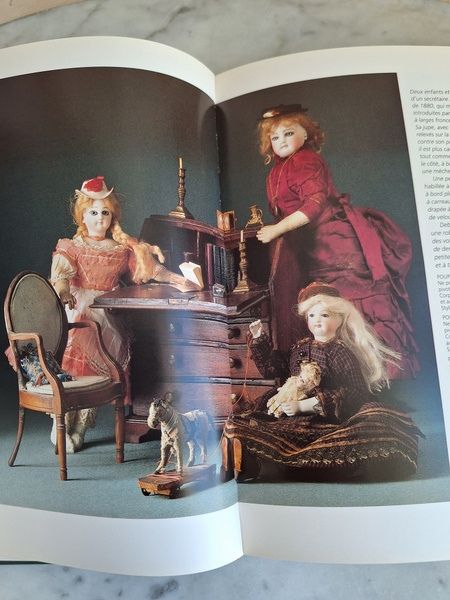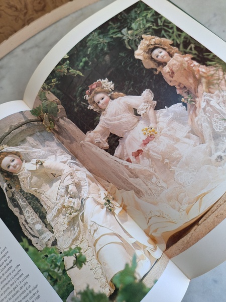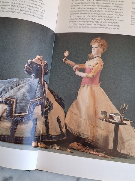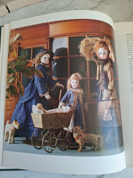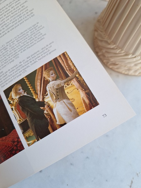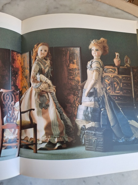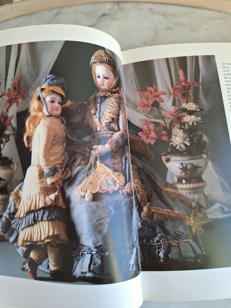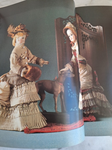 Poupees de Mode本です。コレクターにとってとても魅力的な144 ページの書籍です。ほぼすべてのページに素晴らしいカラー写真が掲載され、キャプションが添えられています。巻末には用語集、参考文献、索引が掲載されています。カバーにご覧の痛みがありますが本自体は使用感は無く、とても良い状態です。ドールのドレスや小物、アンティークのジュエリーケースなどとも撮影されており、見るだけでも幸せな気持ちになる一冊です。フランス/1986年