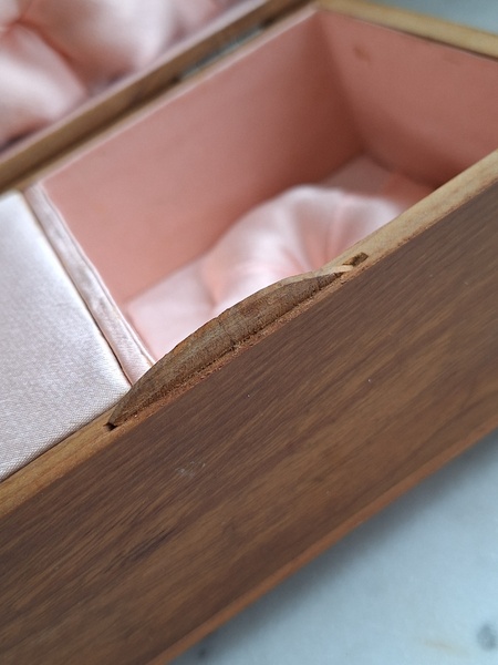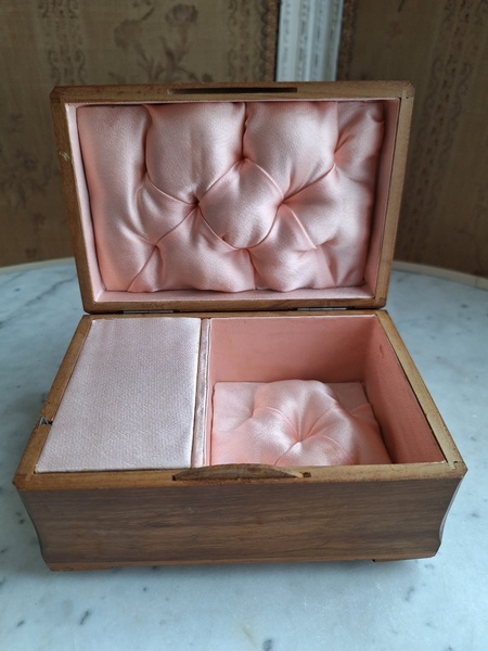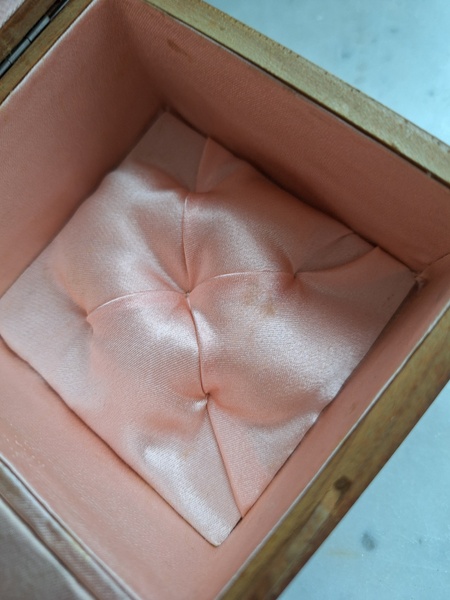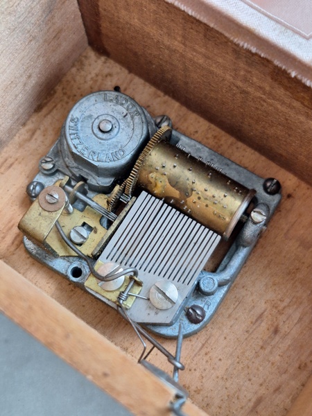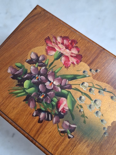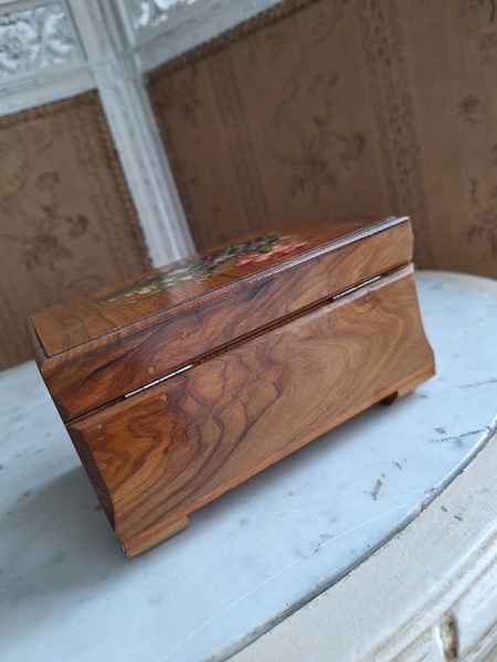 モシュリンヌすみれとすずらん柄オルゴールです。中はピンクのクッションが付いています。とても良い状態です。曲の記載が無いのですが聴いていると心地よくリラックスㇽ音色です。フランス