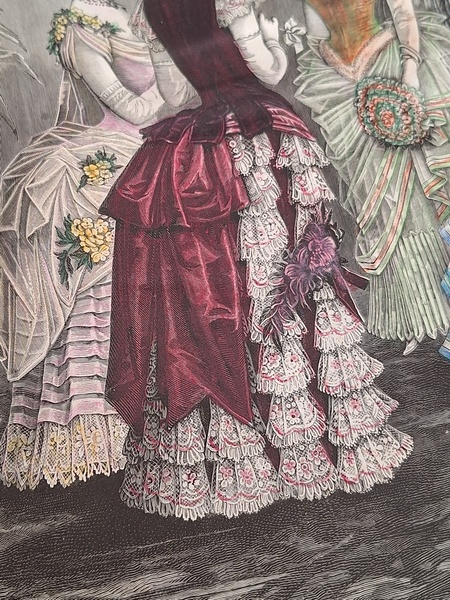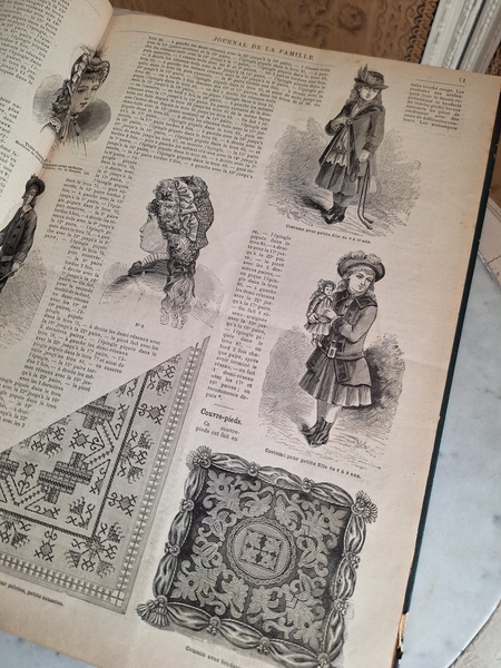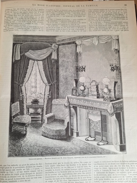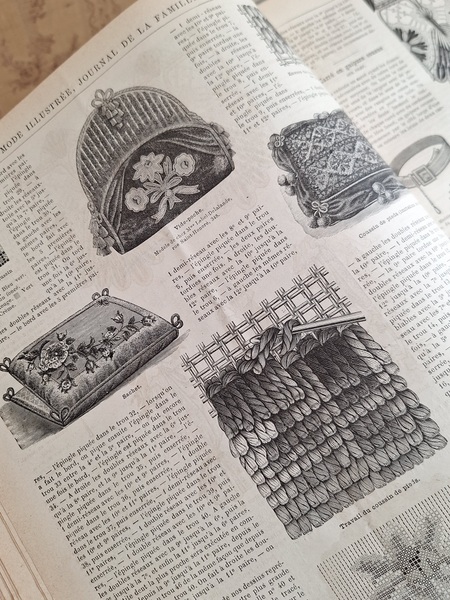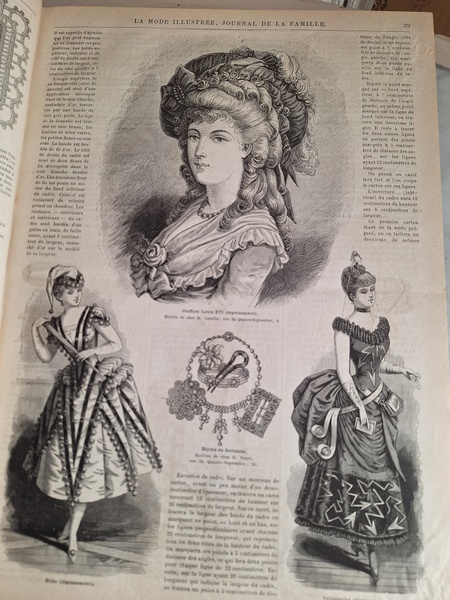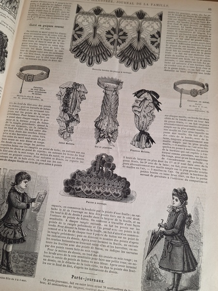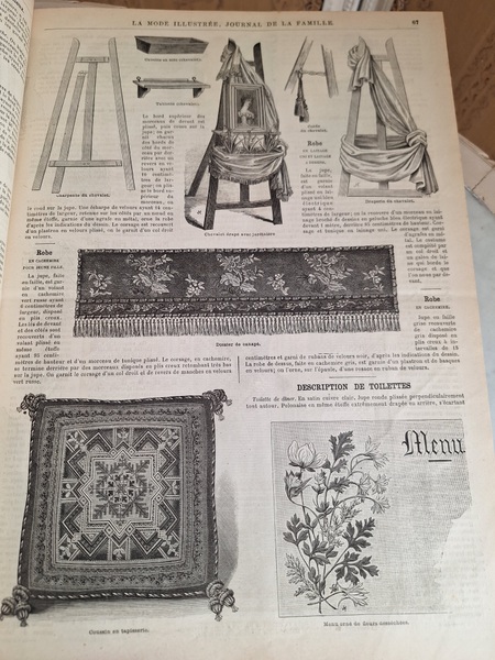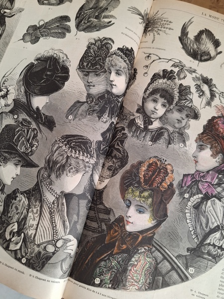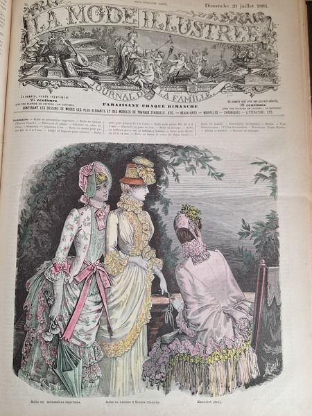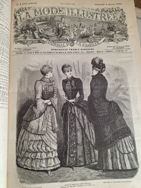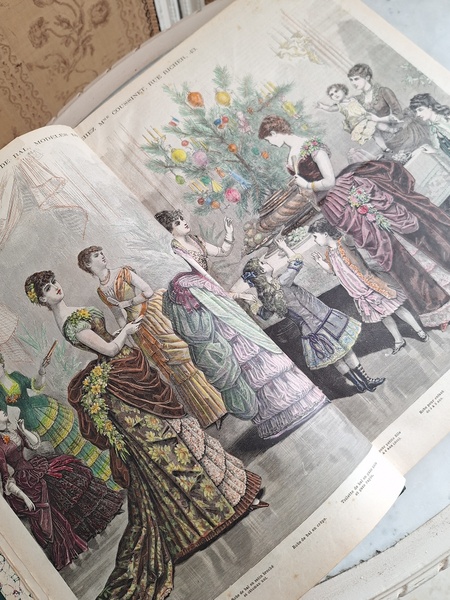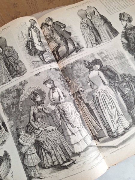 La mode Ilustreeモード本La Mode Ilustree、ファッションモードのイラストレーションブックです。ヴィクトリアン期のファッションが楽しめる本です。ドレスはもちろんハットからアクセサリー、カーテン、当時の家具など子供から大人のファッション小物など幅広くイラスト付きで紹介されています。毎回ですが時間を忘れて見とれてしまう一冊です。全部見ていただけないのが残念ですが50枚程度、お写真付けさせていただきます!