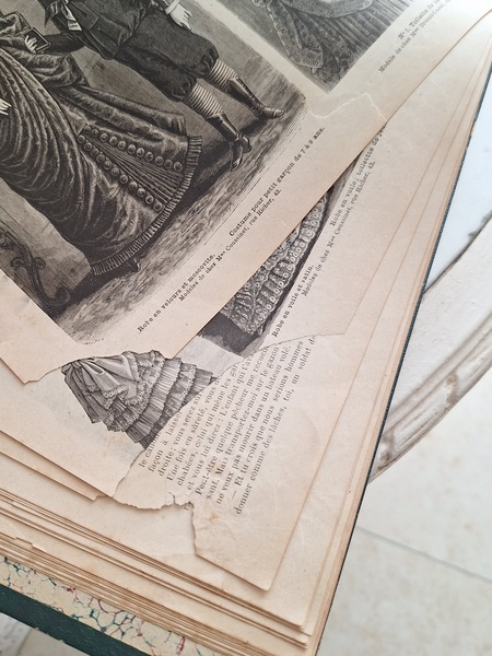 私のオランダ語の恩師が子供の頃からマーストリヒトの駅前にお住まいで、先生は80代。そのお母さまがお針子さんで100年以上前にこの本を実際に使って洋服を作っていたそうです。当時はネットなどもなかったためパリのモードはこの本で見てお針子さんが作られていたそうです。ドレスやボネなどを身に着けて通りを歩き、パリの流行を伝えていたそうです。