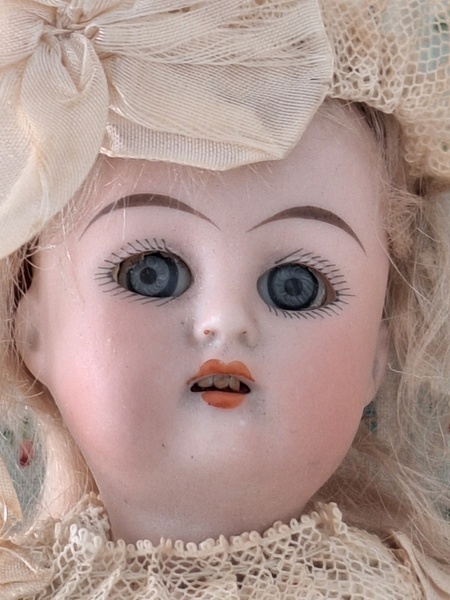 Kämmer & Reinhardtビスクヘッドドール(カマー&ラインハルト)です。19世紀後半から20世紀初頭にドイツで活躍したビスクドールメーカーです。まるで今にも動きそうな繊細な表情を持つ、魅力のあるドールです。世界中でコレクターに人気があります。現代でもアンティークドールコレクターの間では高値でやり取りされています。