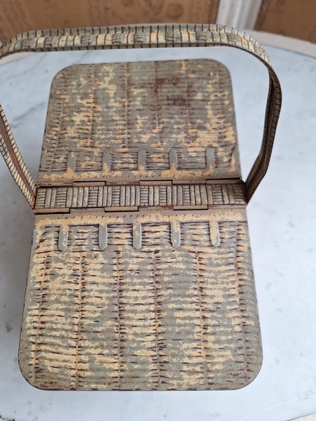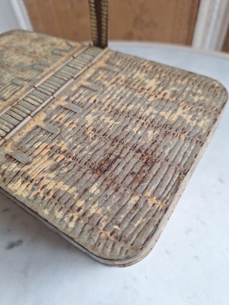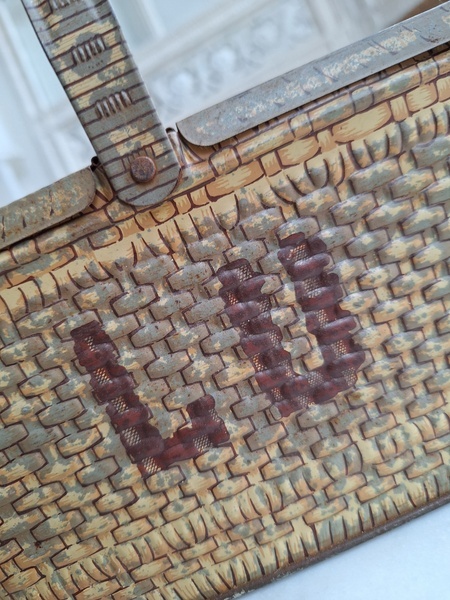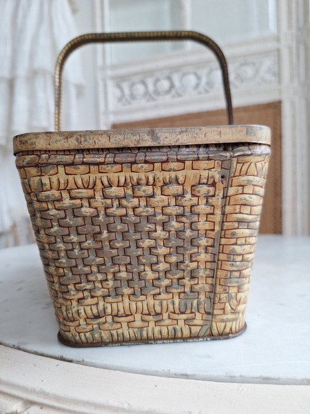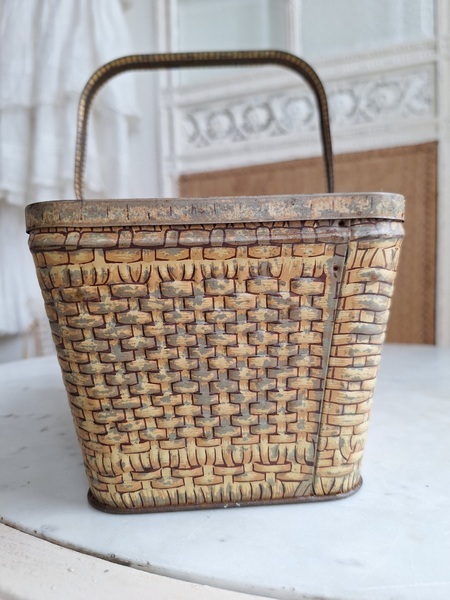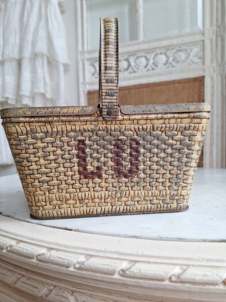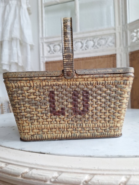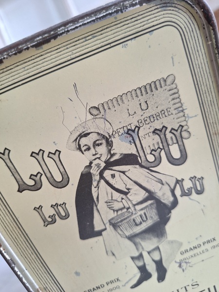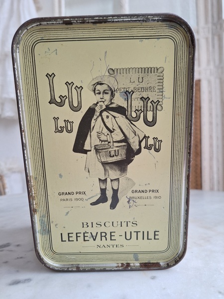 LUバスケット缶/パニエ缶です。バスケットの裏に男の子がマントをまとってビスケットを食べる姿お可愛いですね。雰囲気のあるLUパニエです。古手のタイプでさび付きが見られますが年代を考えると良い状態と思います。数も少なくなり、お値段も高騰しています。お探しの方はどうぞ。フランス製