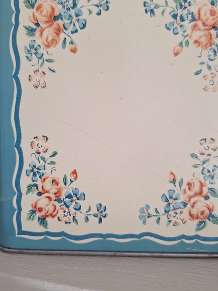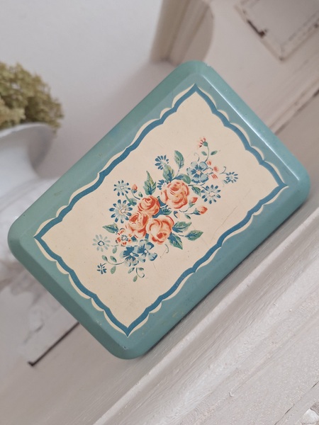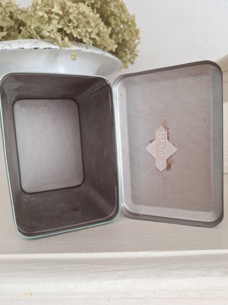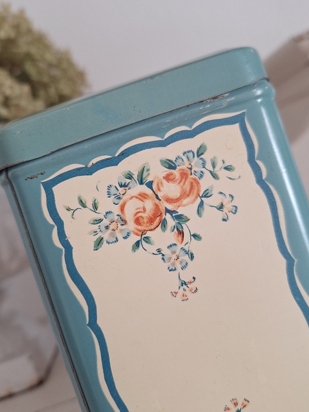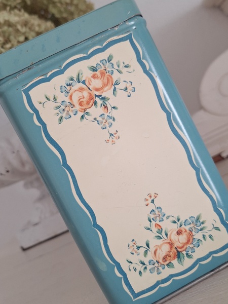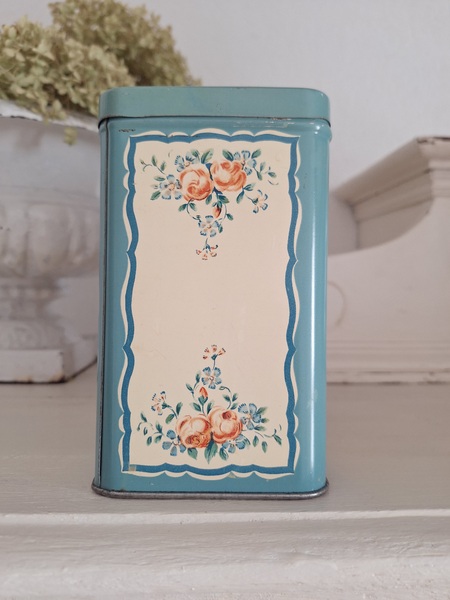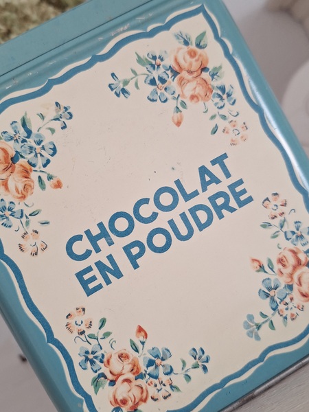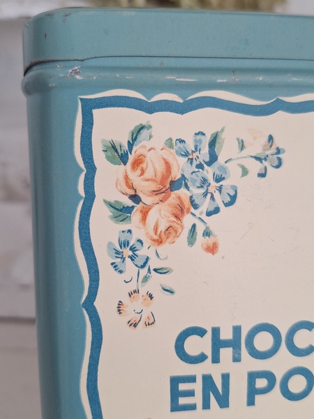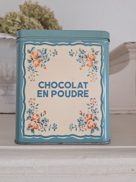 ピンク柄ティン製キャニスター/ショコラムニエ缶(キャニスター)です。こちらのアイテムももう少なくなり、シャビ―な物が多いのですがご覧のように完品に近い、良い状態です。チョコレートパウダーが入っていました。フランス製