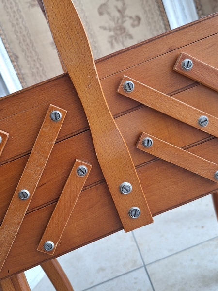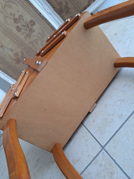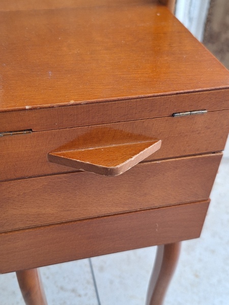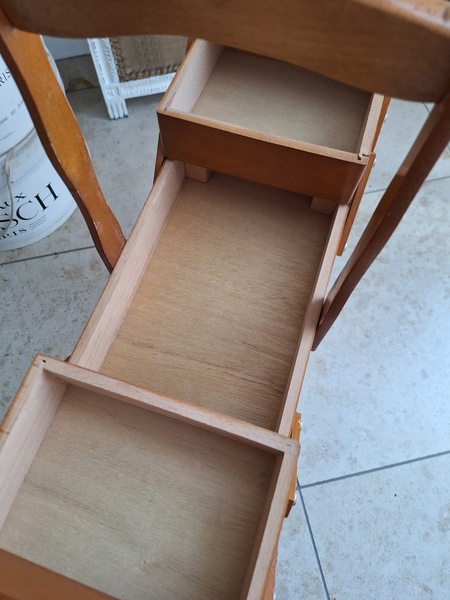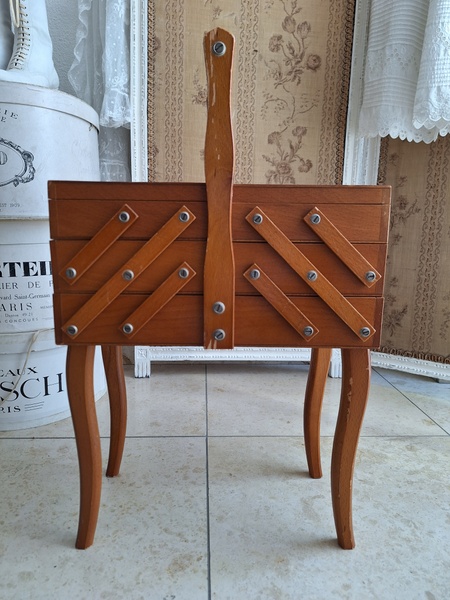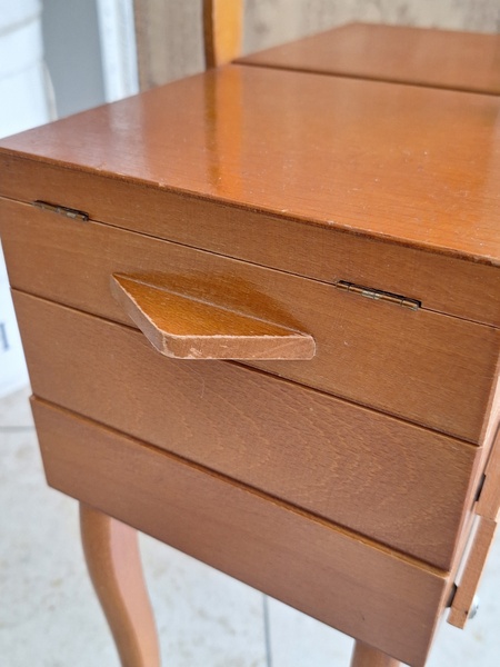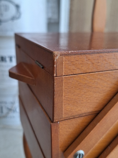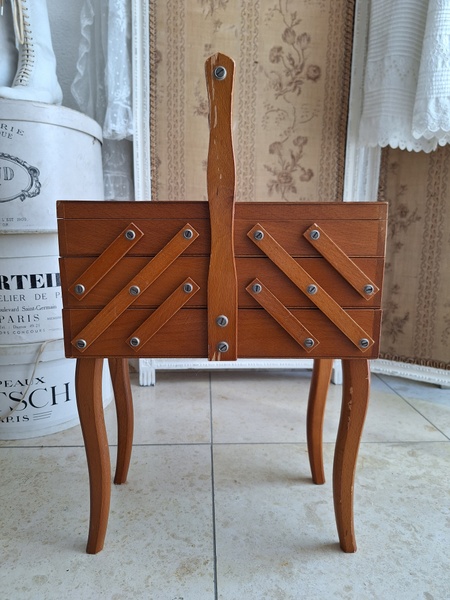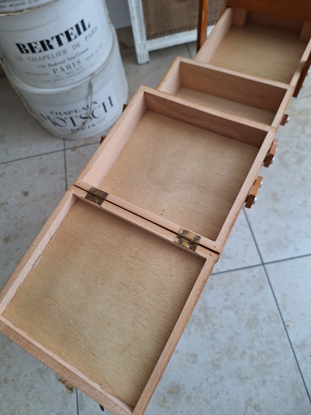 小さな猫脚ソーイングボックスです。この3倍くらいの大きなサイズはあるのですが小型のタイプは数が少ないです。最後の画像のようなニスの色が剥げた箇所あります。開け閉めはスムーズで金具の交換等も無く、良い状態です。フランス