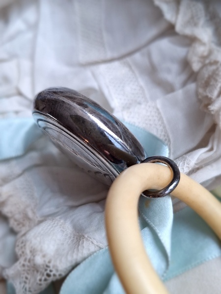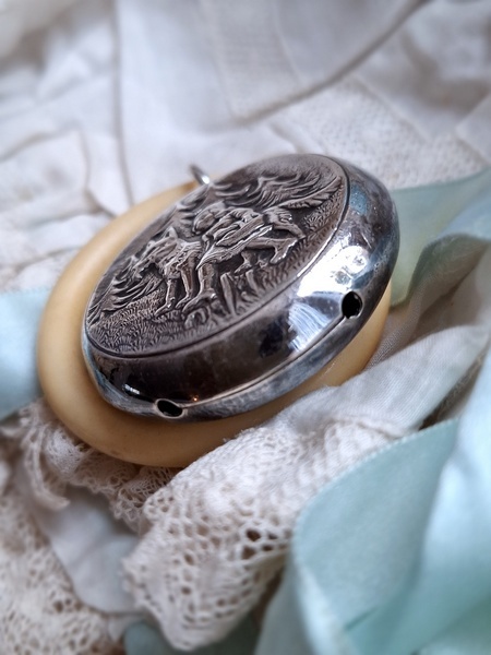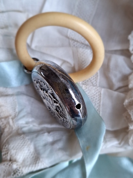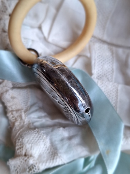 赤ずきんちゃんラトルです。シルバープレーテッドです。ベルで音が出ます。SPARと言うスーパーで販売促進で配られていた物のようです。少し黒ずんでいますが画像では他の物が写って濃く見えています。オランダ/ヴィンテージ